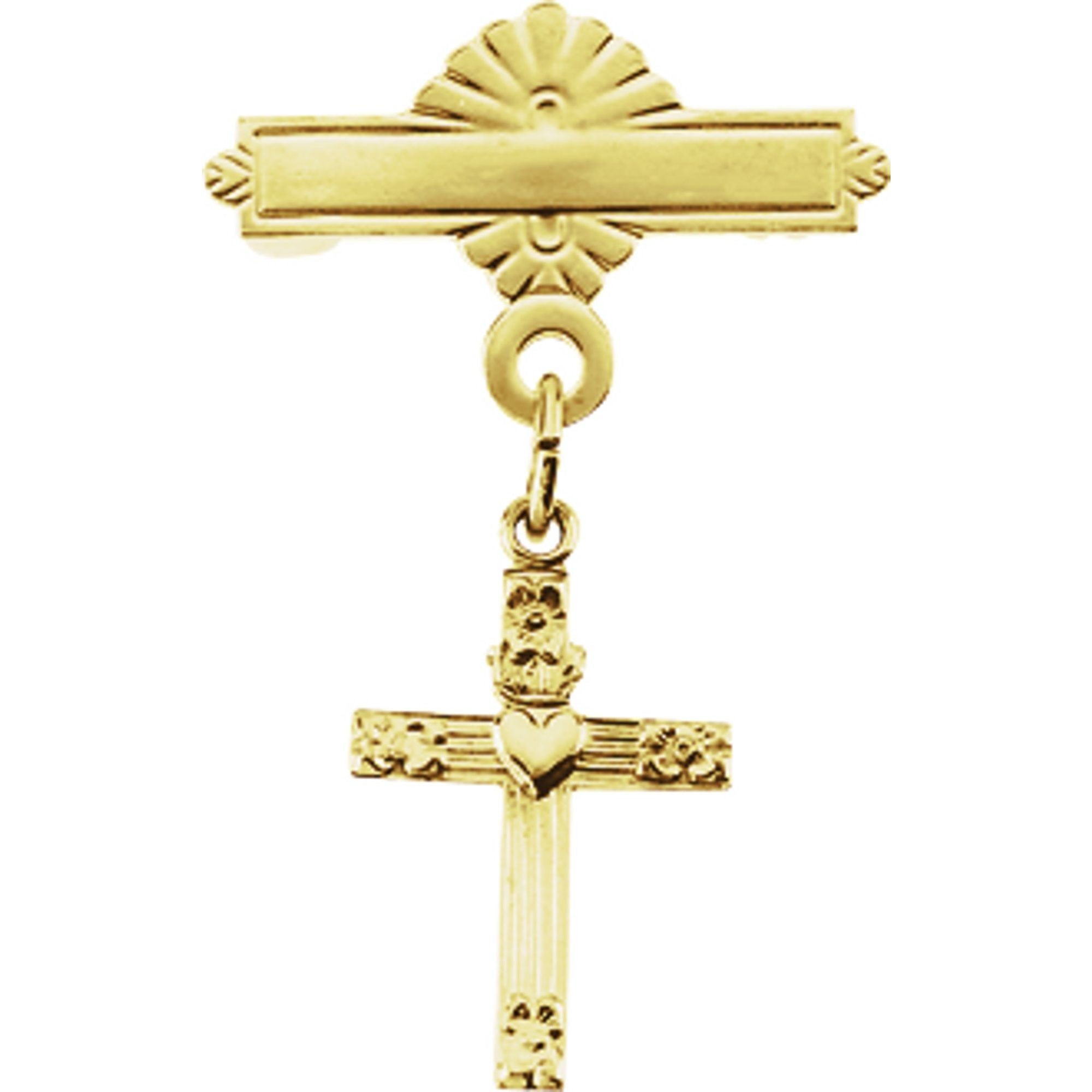 R16732 / Lapel Pin / 14K Yellow / 24 X 17 Mm / Polished / Cross Baptismal Pin