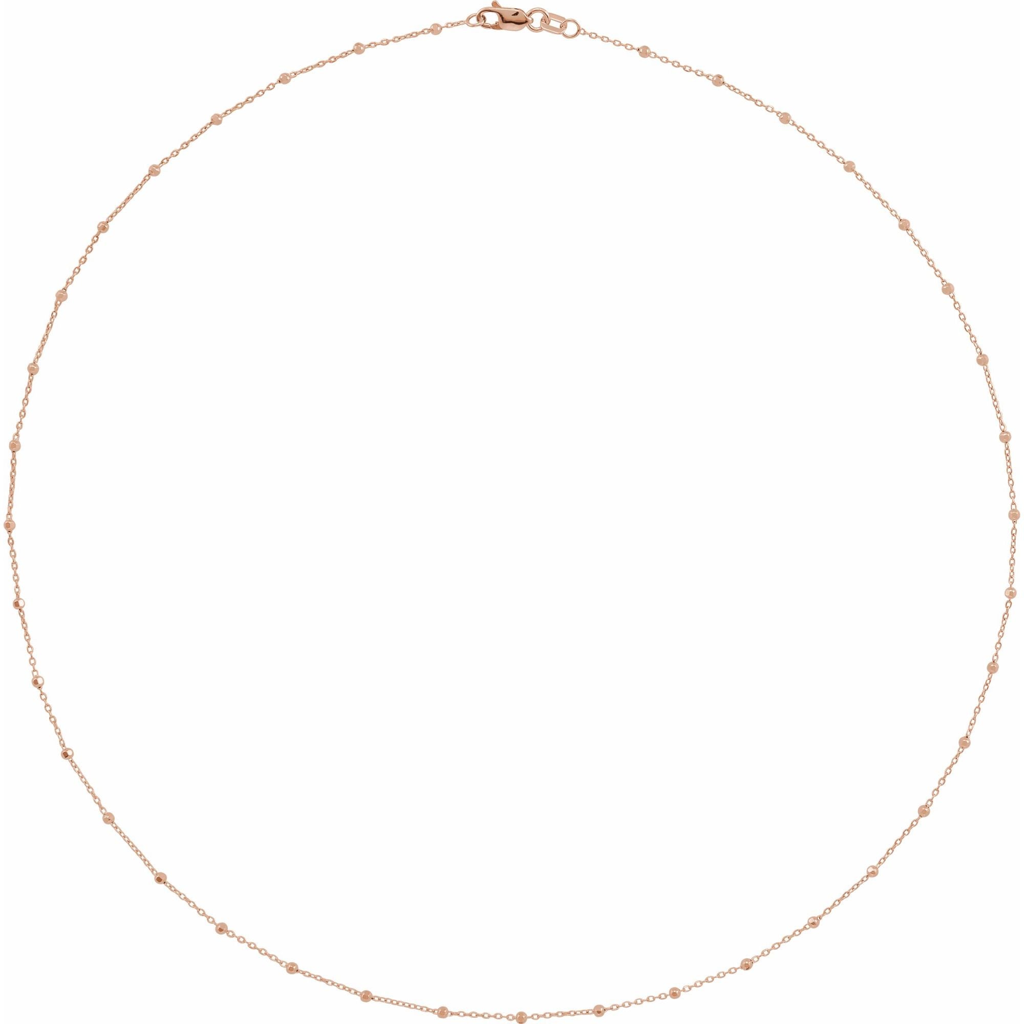 14K Rose .85 mm Faceted Beaded Cable 18" Chain
