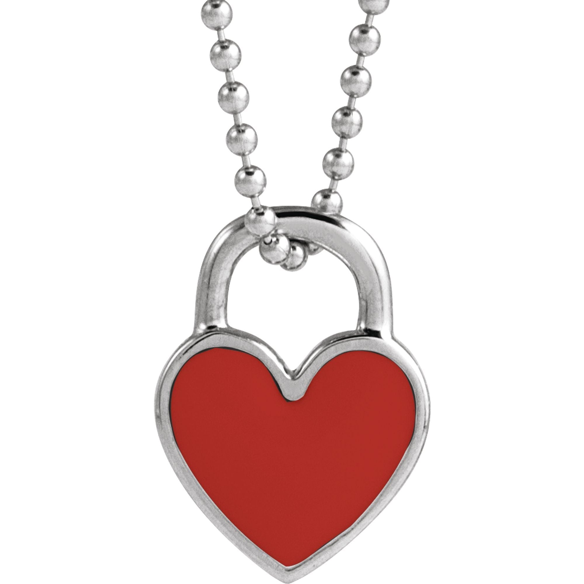 Sterling Silver Red Enamel Heart 18" Necklace