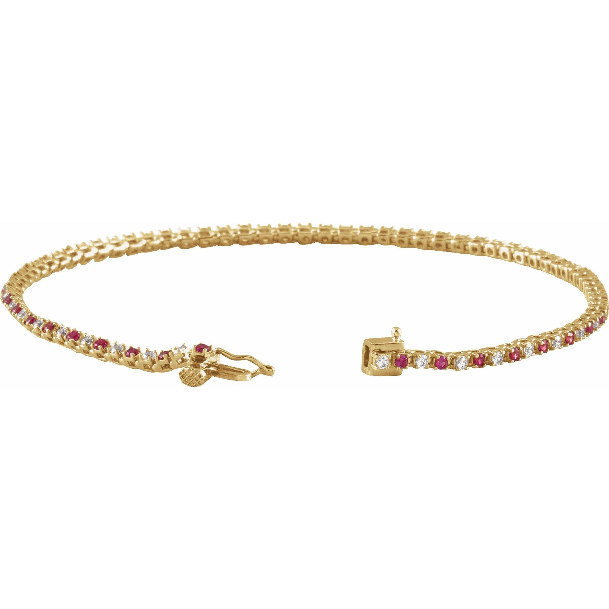 14K Yellow Natural Ruby & 5/8 CTW Natural Diamond Line 7 1/4" Bracelet