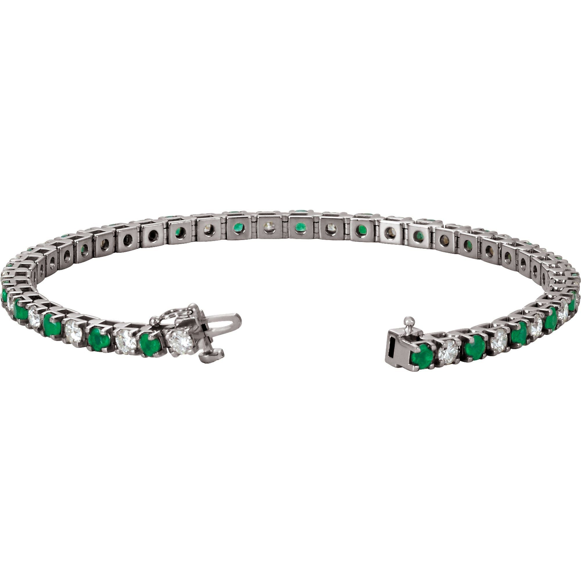 14K White Lab-Grown Emerald & 2 3/8 CTW Lab-Grown Diamond Line 7" Bracelet