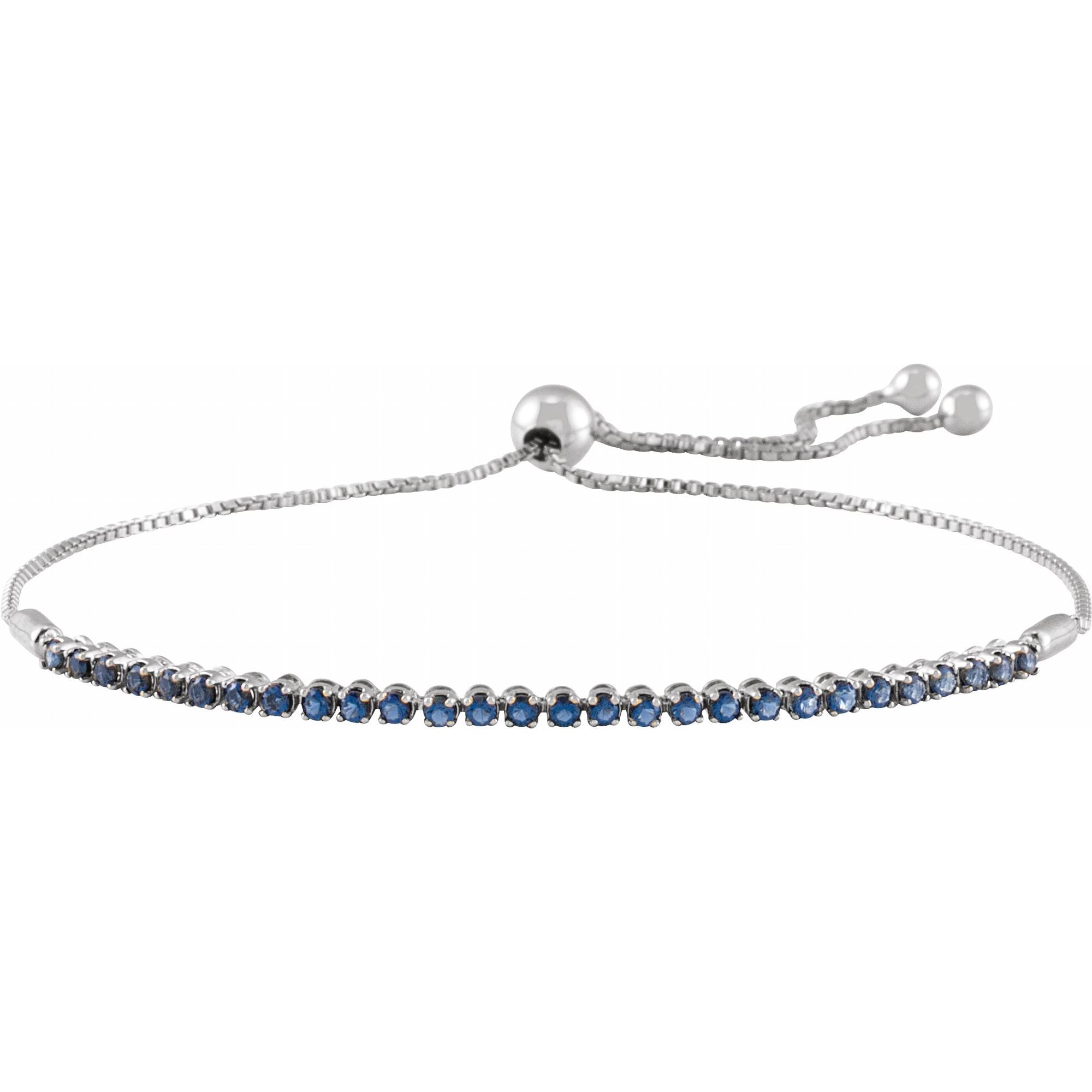Brc900 / Bracelet / Set / 14K White / Round / Natural Blue Sapphire / 1.7 Mm / 9 1/2 In / Polished / Natural Blue Sapphire Adjustable Bolo Bracelet