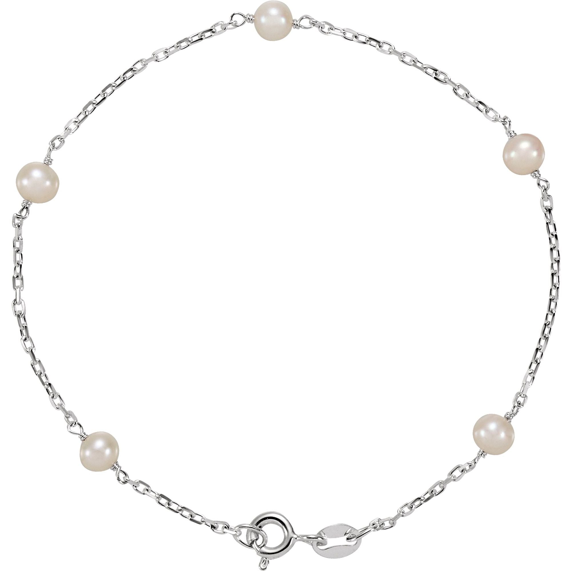 Brc3530 / Bracelet / Set / Sterling Silver / Pearl / Cultured White Freshwater Pearl / 4.0-4.5 Mm / 7 In / Polished / Cultured White Freshwater Pearl Station Bracelet