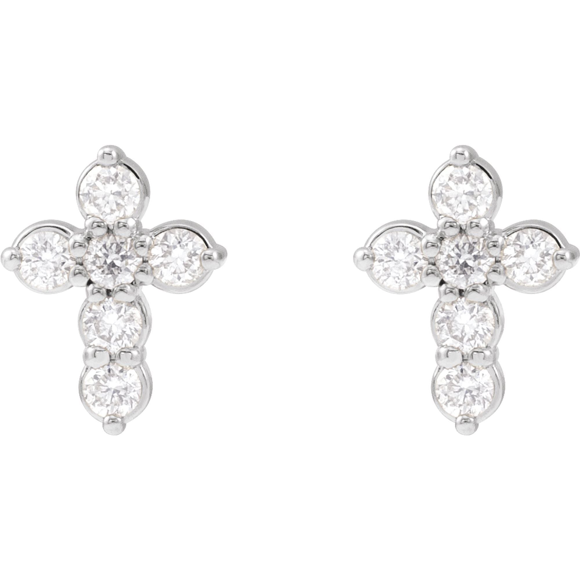 14K White 1/6 CTW Lab-Grown Diamond Cross Earrings