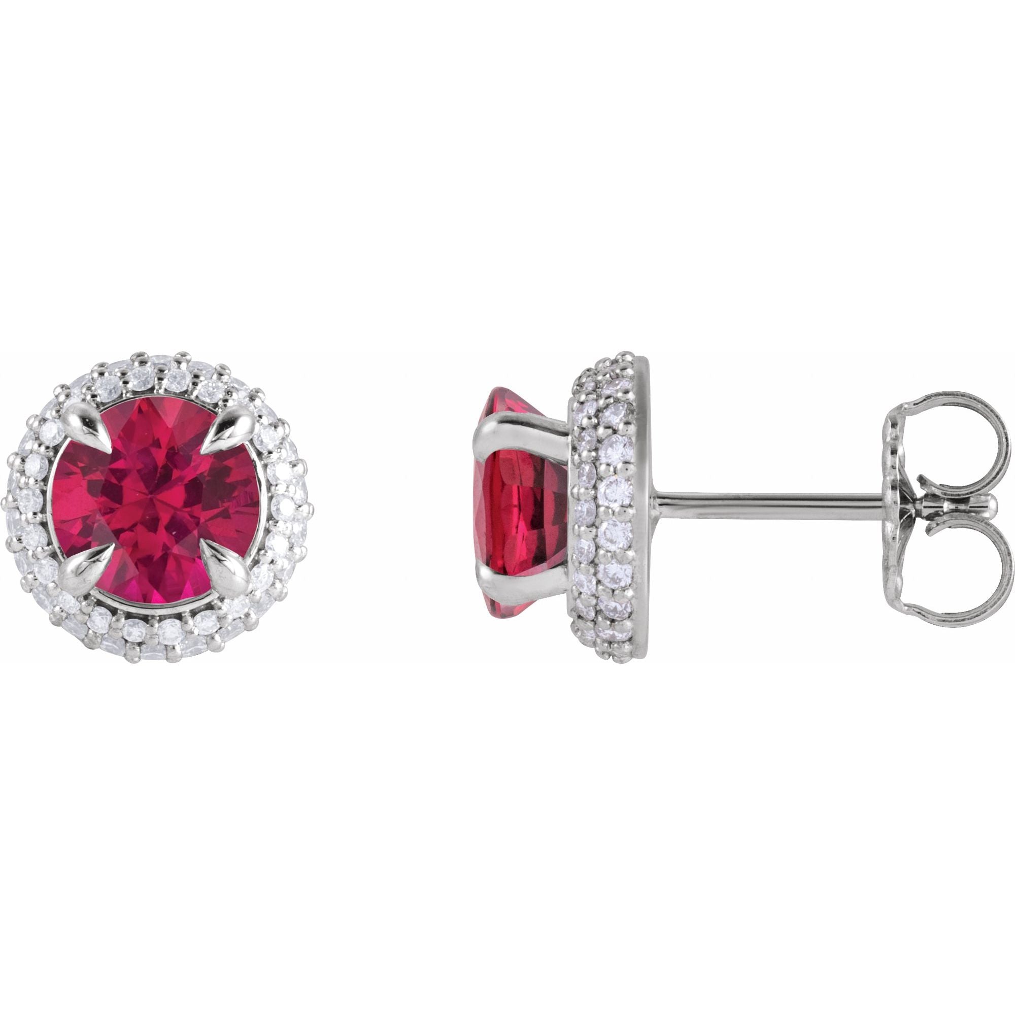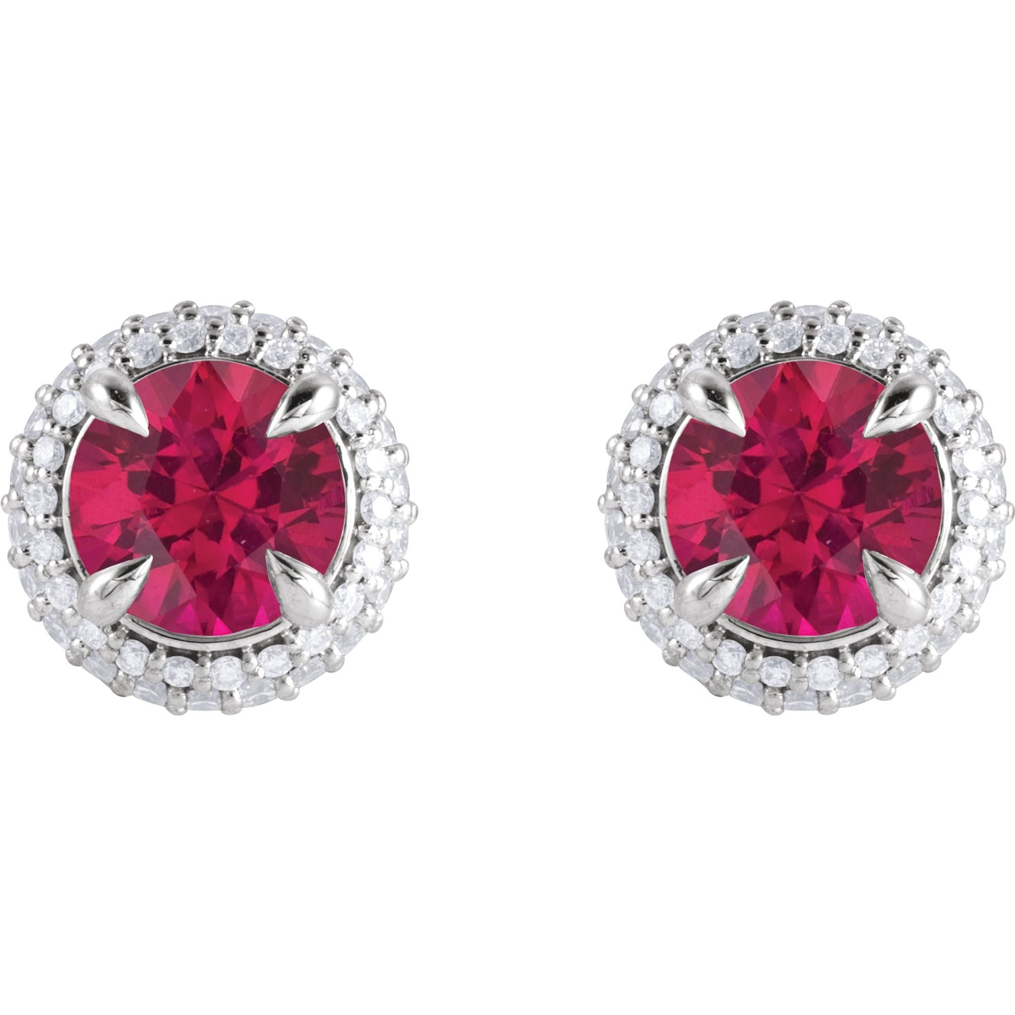 14K White Lab-Grown Ruby & 1/2 CTW Lab-Grown Diamond Halo-Style Earrings