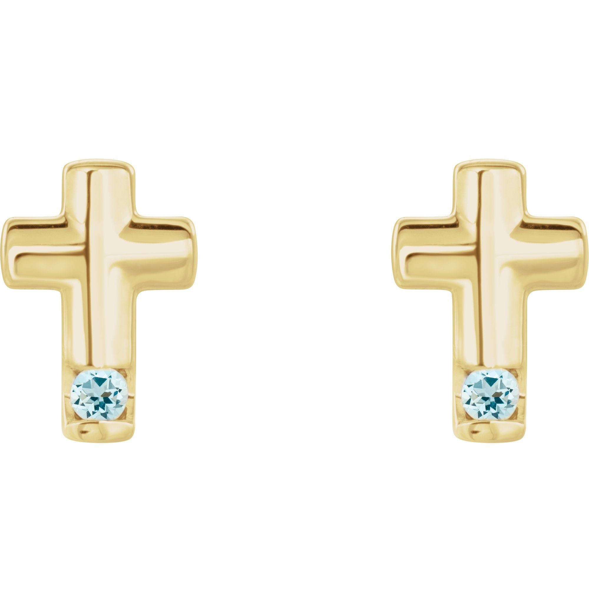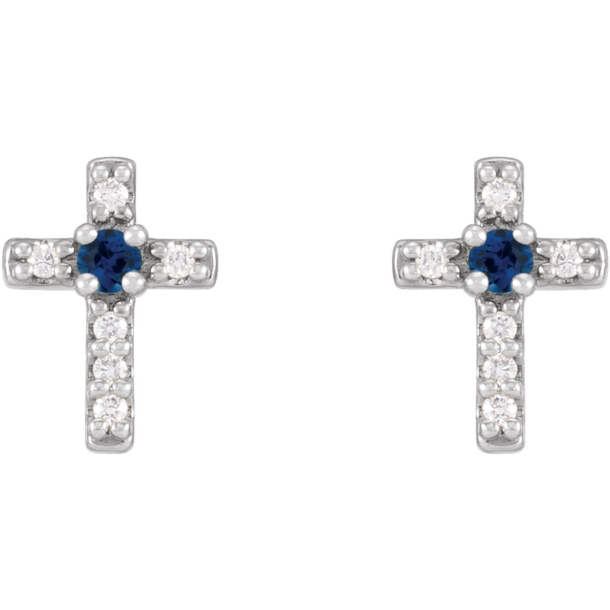 14K White Natural Blue Sapphire & .03 CTW Natural Diamond Cross Earrings