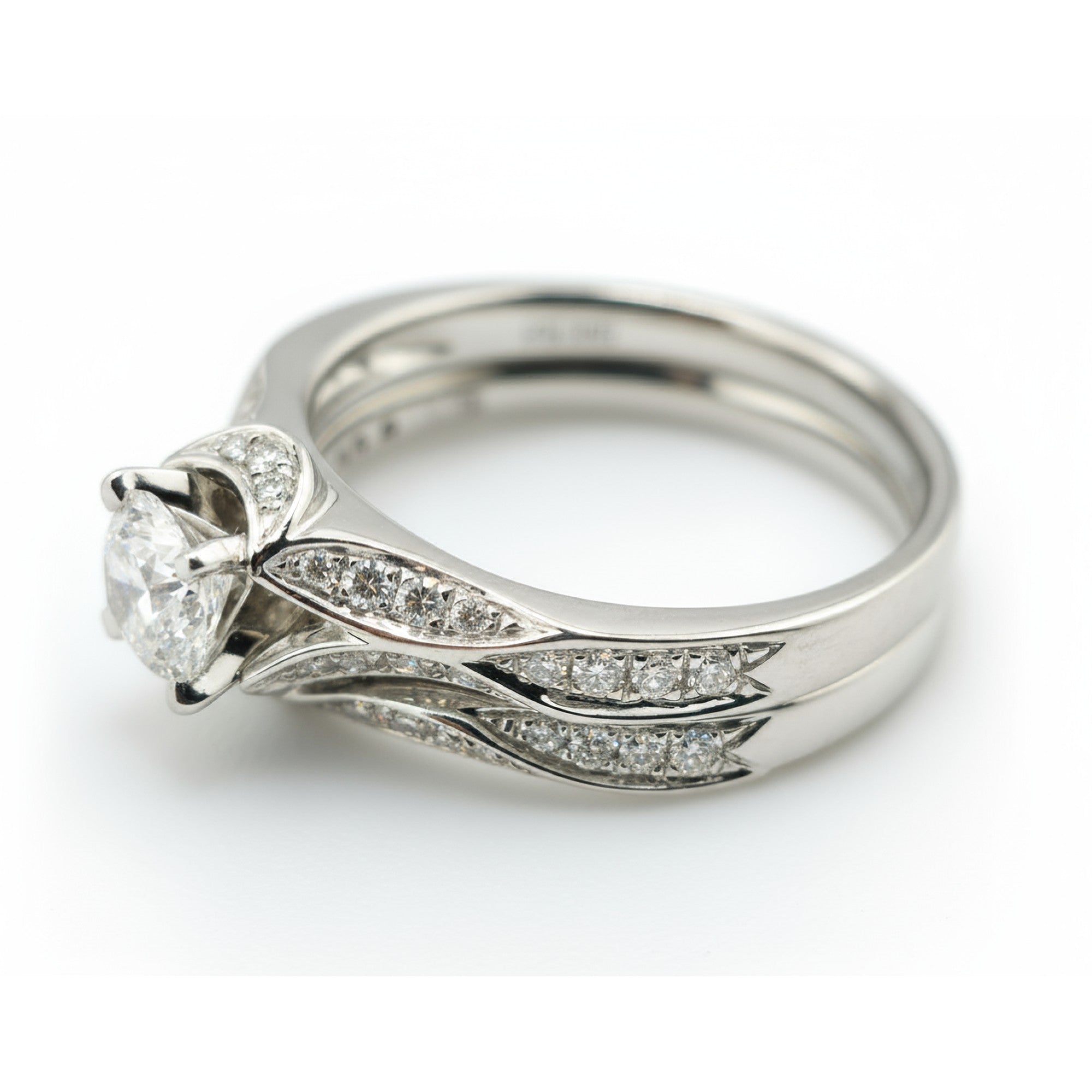 Henrietta .87ct round diamond ring wedding set, 14k white gold
