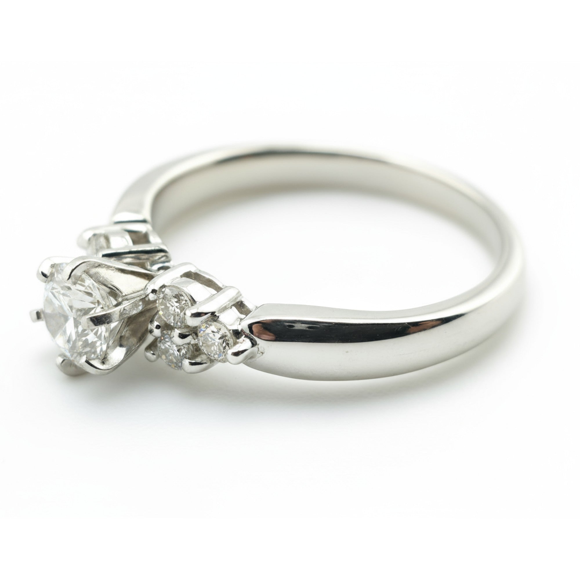 Tamara showcases a 0.52 carat round brilliant center diamond of Ideal cut and Internally Flawless (IF) clarity, surrounded by delicately graduated accent stones for a total diamond weight of 0.76 carats. Designed by Paul Winston and crafted in 14k white gold, this elegant composition captures timeless sophistication with a touch of radiant symmetry.