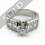 Vera features a 0.77 carat round brilliant center diamond of Excellent cut and VVS1 clarity, accented by precision-set baguette and princess-cut diamonds for a total diamond weight of 1.32 carats. Expertly crafted in 18k white gold, its architectural setting radiates a confident brilliance—perfect for those who appreciate timeless design with contemporary edge.