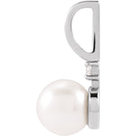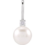 14K White Cultured White Akoya Pearl & .03 CT Natural Diamond Charm/Pendant