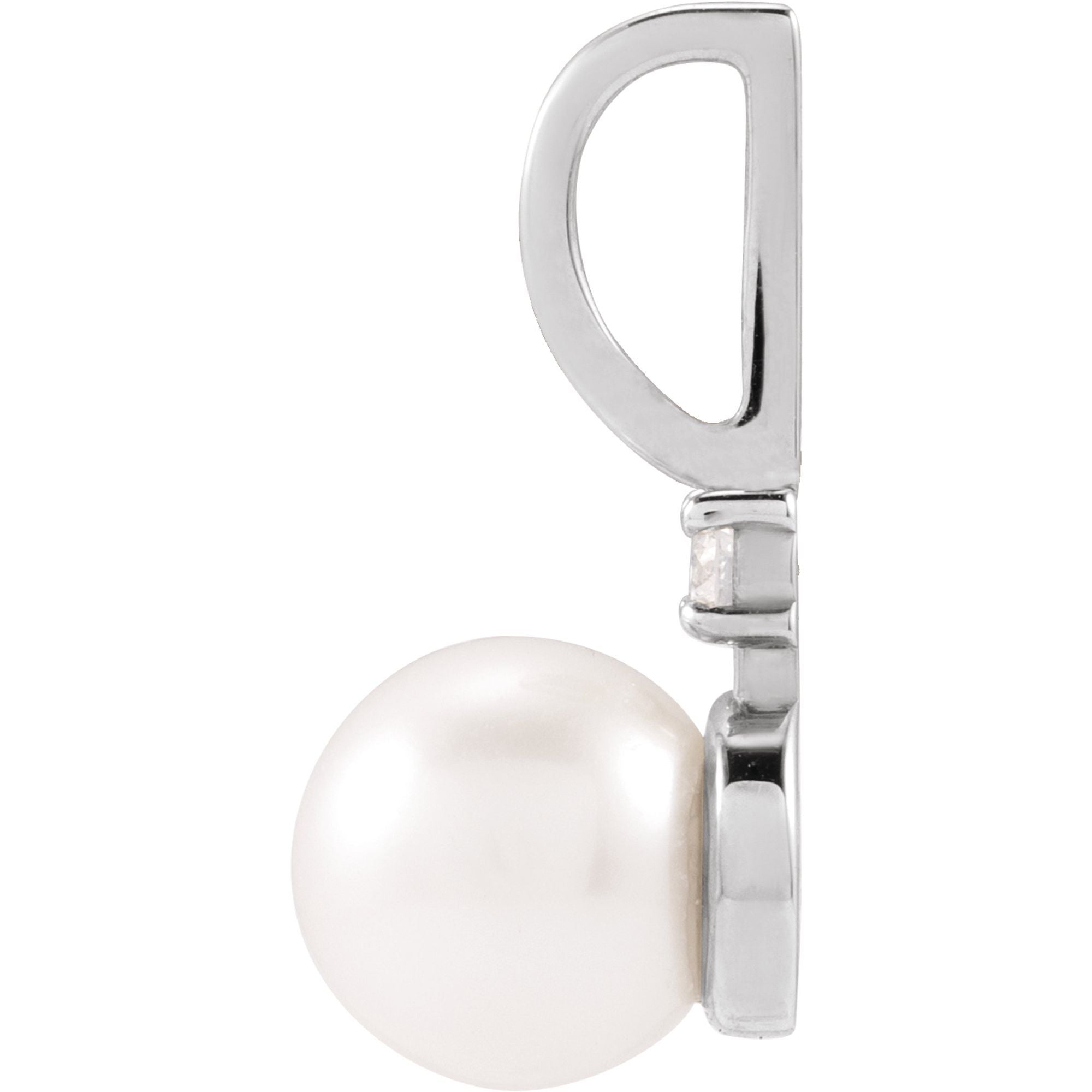 88833 / Pendant / Set / 14K White / Pearl / Cultured White Akoya Pearl / 6Mm :: 0.03 Ct / Natural Diamond / I1, G-H / Polished / Cultured White Pearl And .03 Ct Natural Diamond Charm/Pendant