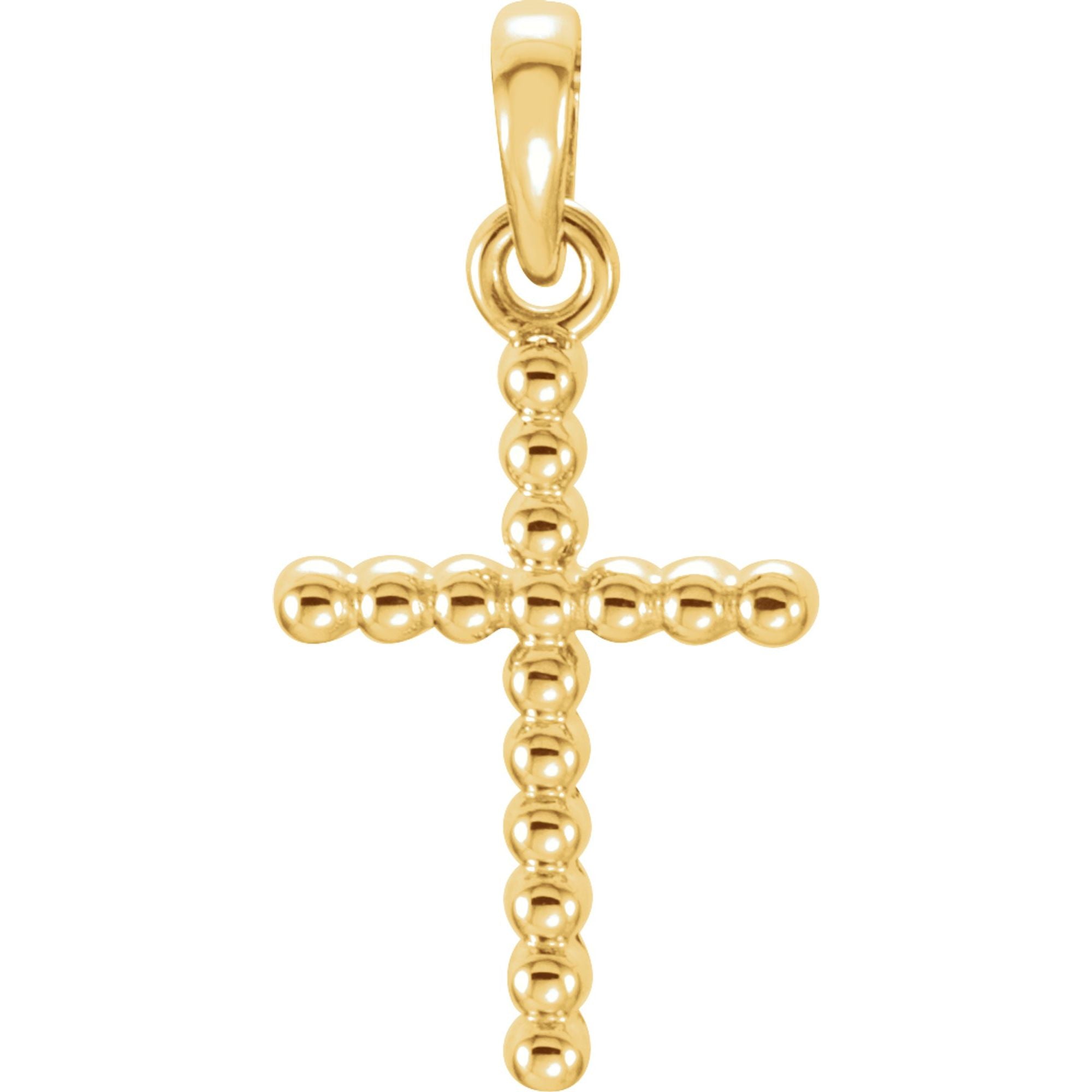 14K Yellow Beaded Cross Pendant