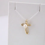 14K Yellow Cultured White Freshwater Pearl Cross Pendant