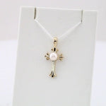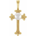 14K Yellow Cultured White Freshwater Pearl Cross Pendant