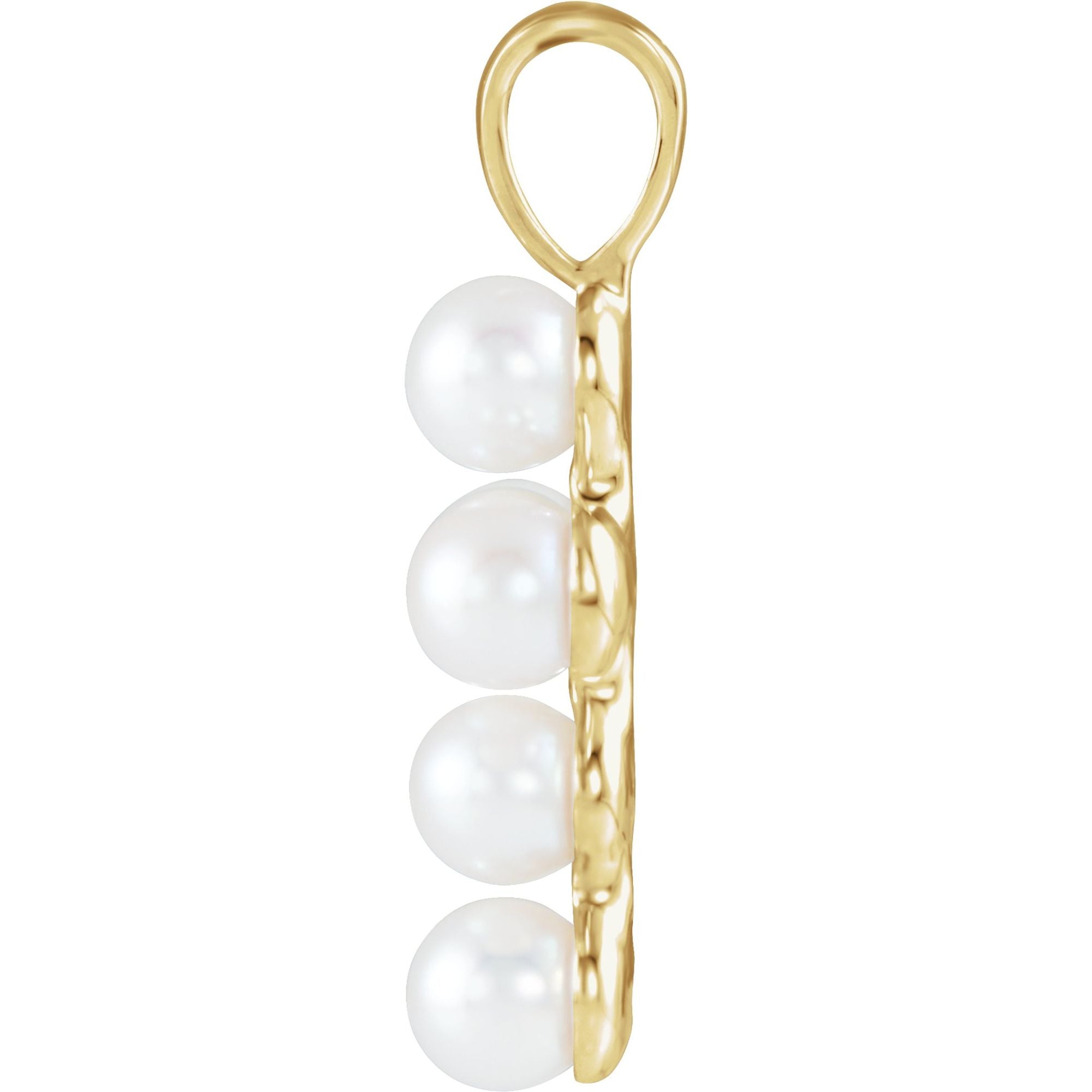 14K Yellow Cultured White Freshwater Pearl Cross Pendant