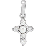 14K White Cultured White Seed Pearl & .07 CTW Natural Diamond Cross Pendant