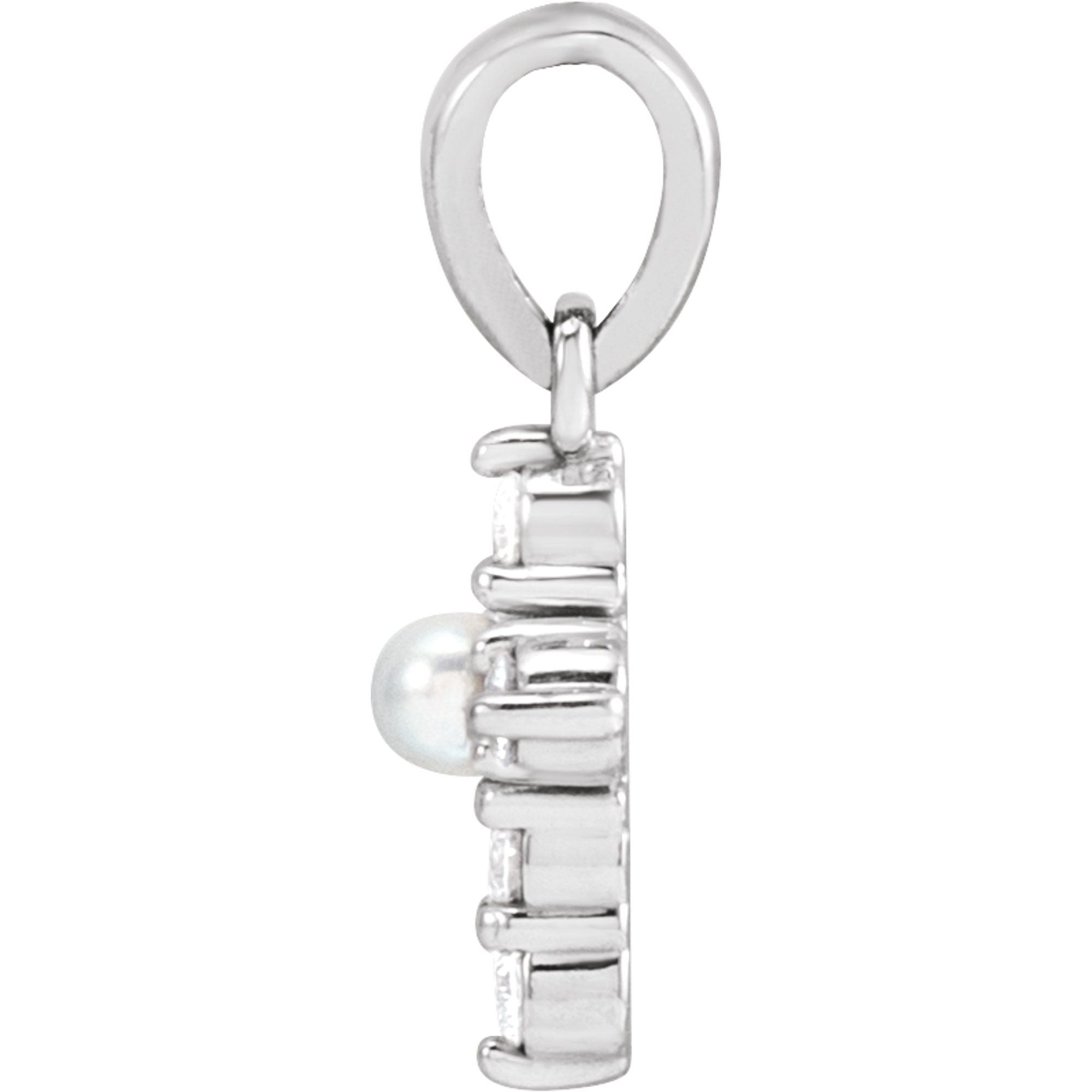 R42426 / Pendant / Set / 14K White / Pearl / Cultured White Seed Pearl / 2Mm :: 0.07 Ctw / Natural Diamond / I1, G-H / Polished / Cultured White Seed Pearl And .07 Ctw Natural Diamond Petite Cross Pendant