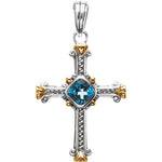 Sterling Silver & 14K Yellow Natural Swiss Blue Topaz Cross Pendant