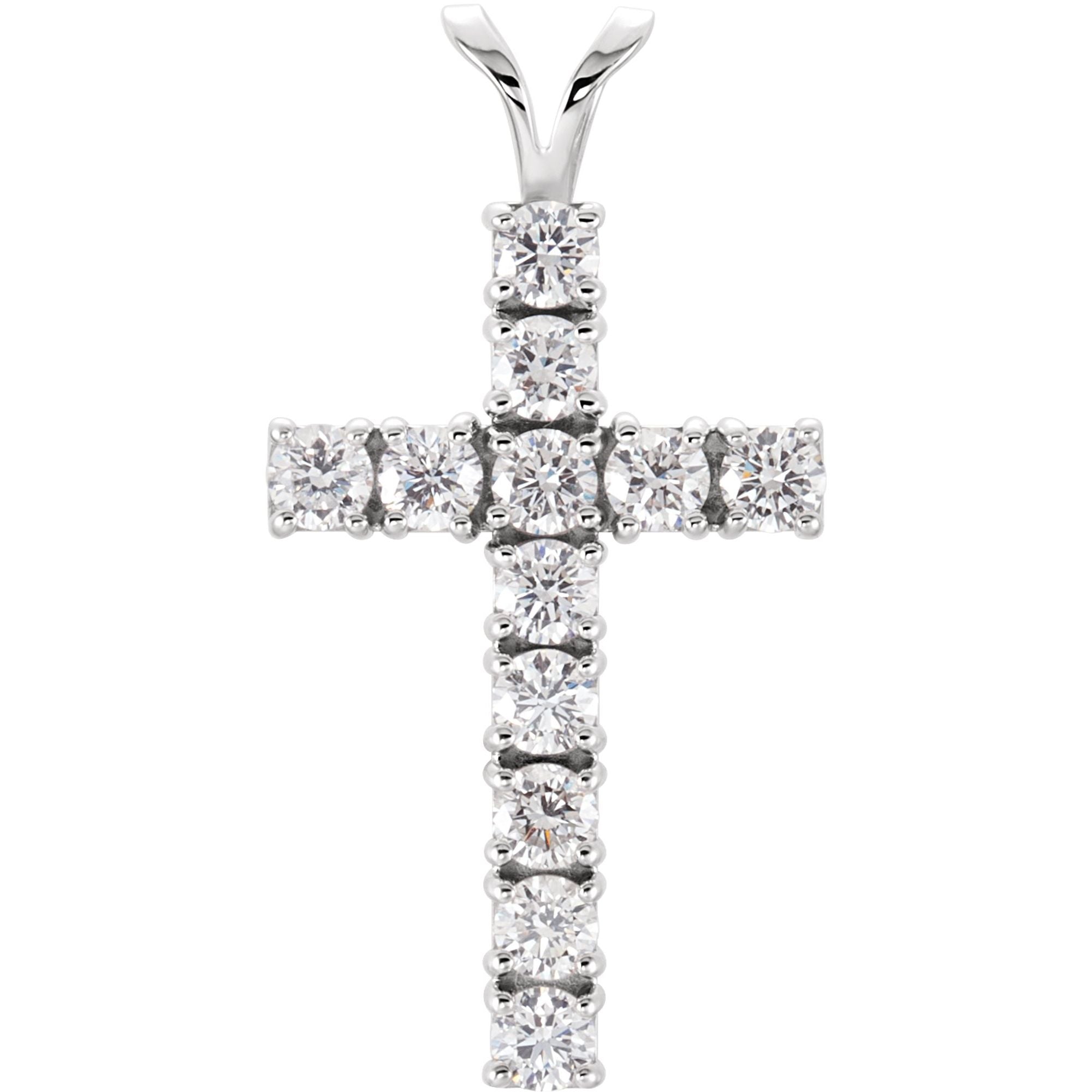 R8041 / Pendant / Set / 14K White / Round / Lab-Grown Diamond / 3Mm :: 1 1/4 Ctw / Si1-Si2, G-H / Polished / 1 1/4 Ctw Lab-Grown Diamond Cross Pendant