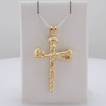 14K Yellow Nail Design Cross Pendant