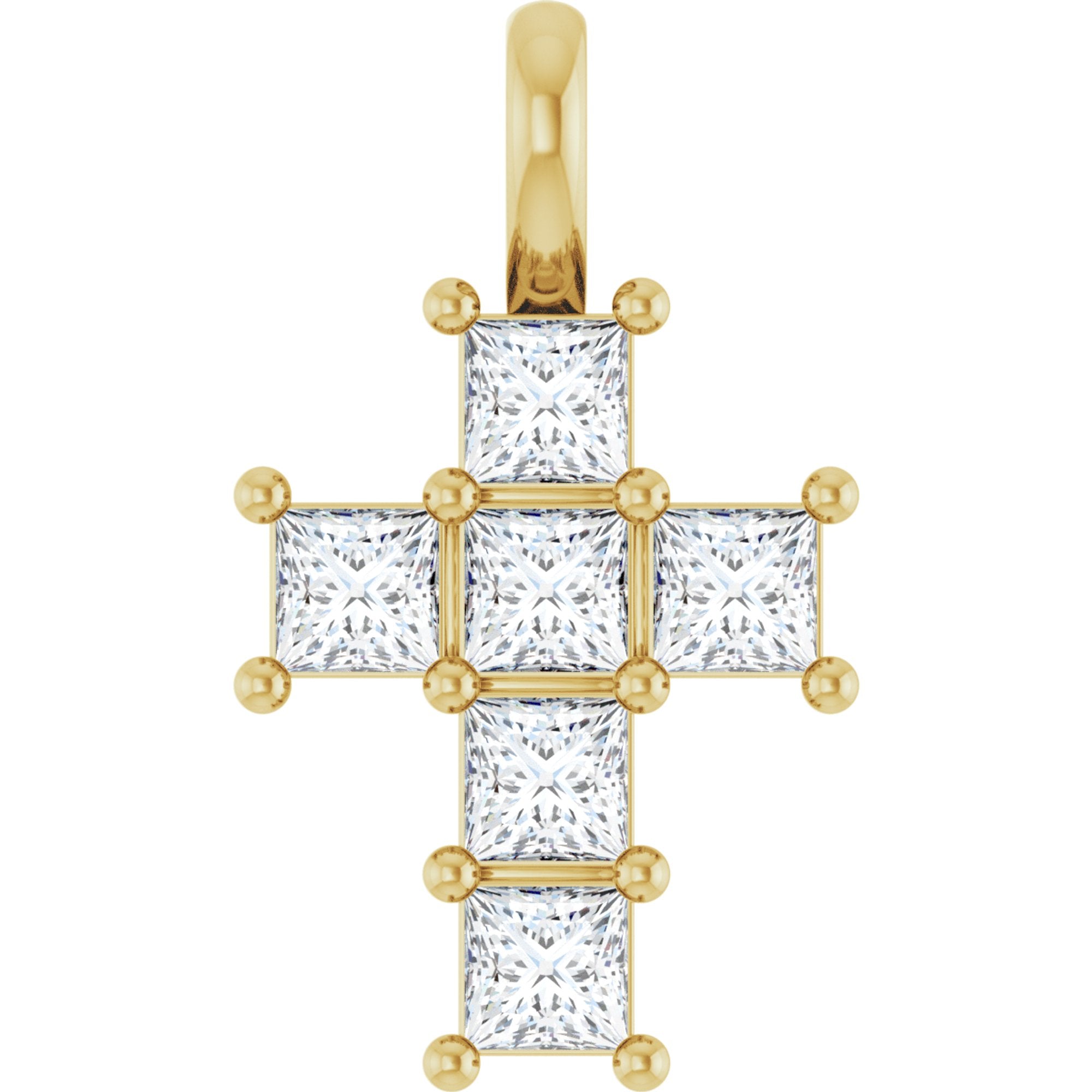 14K Yellow Lab-Grown Diamond Cross Pendant