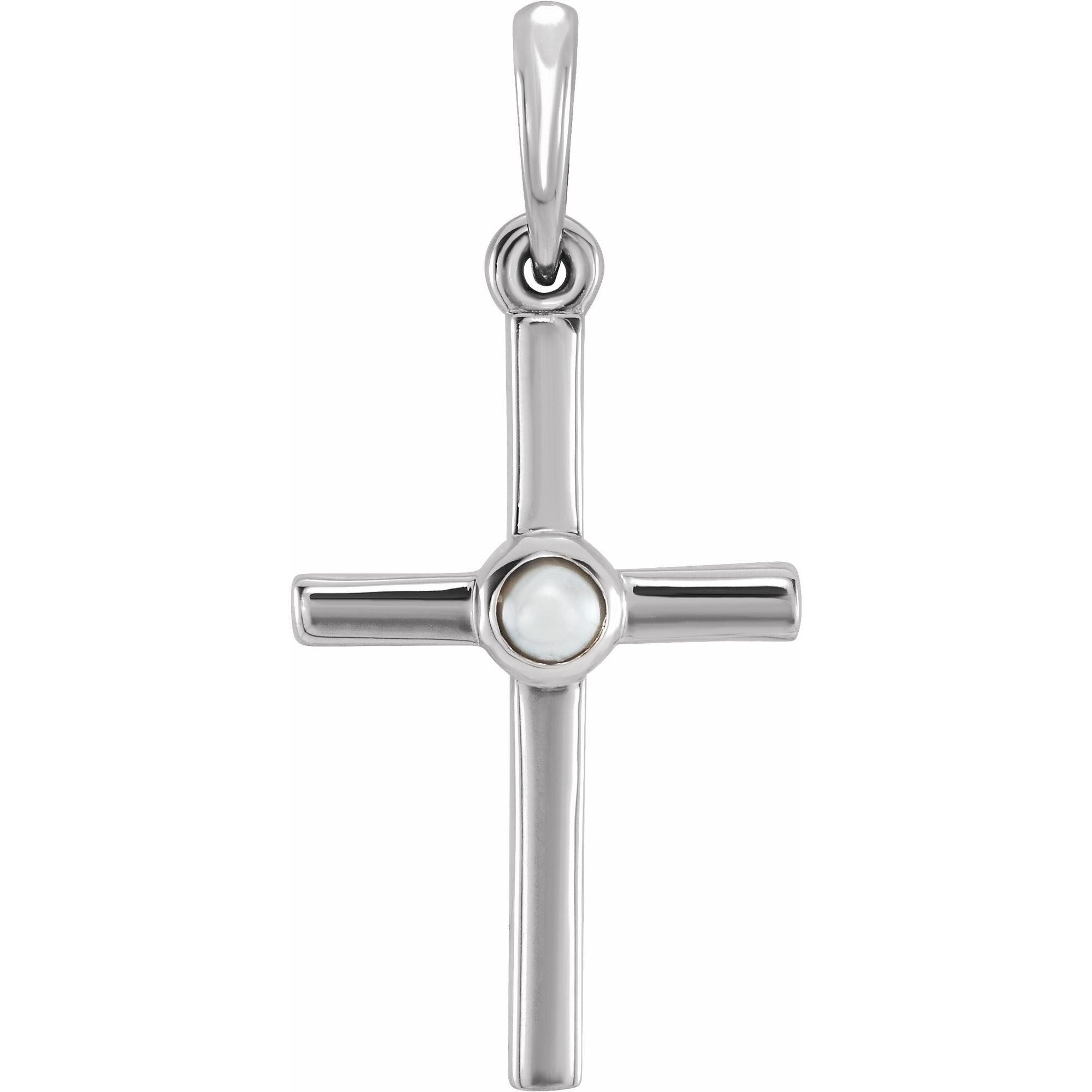 Sterling Silver Cultured White Freshwater Pearl Cross Pendant