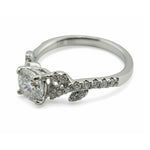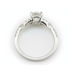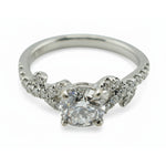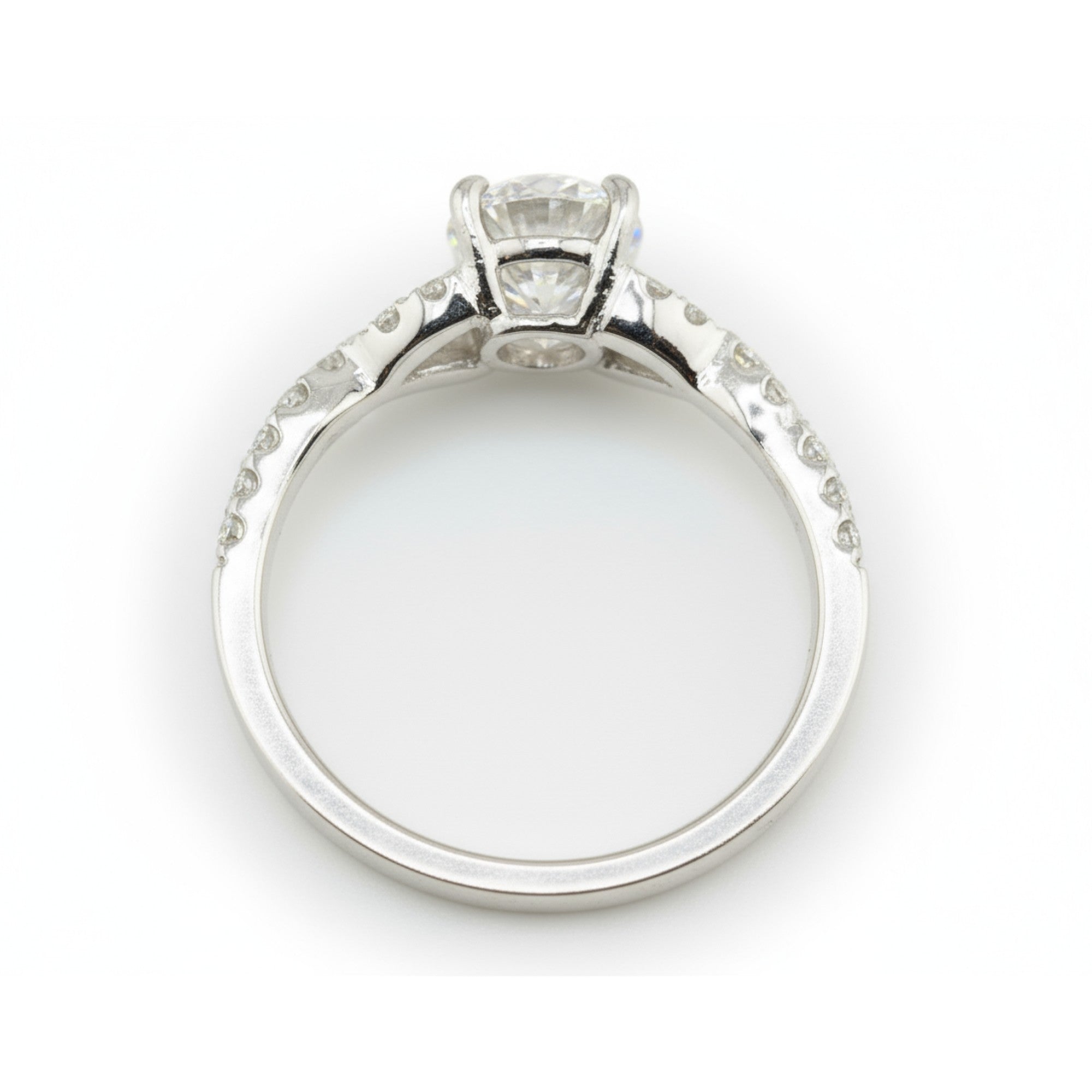 Ivy features a 1.04 carat round brilliant center diamond of Ideal cut and VVS1 clarity, surrounded by an artfully curved pavé band for a total diamond weight of 1.79 carats. Crafted in 14k white gold, its flowing silhouette evokes the natural grace of climbing vines, with each diamond meticulously placed to reflect light from every angle.