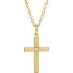 14K Yellow .0075 CT Natural Diamond Youth Cross 15" Necklace
