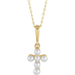 14K Yellow Cultured White Seed Pearl Youth Cross 16" Necklace