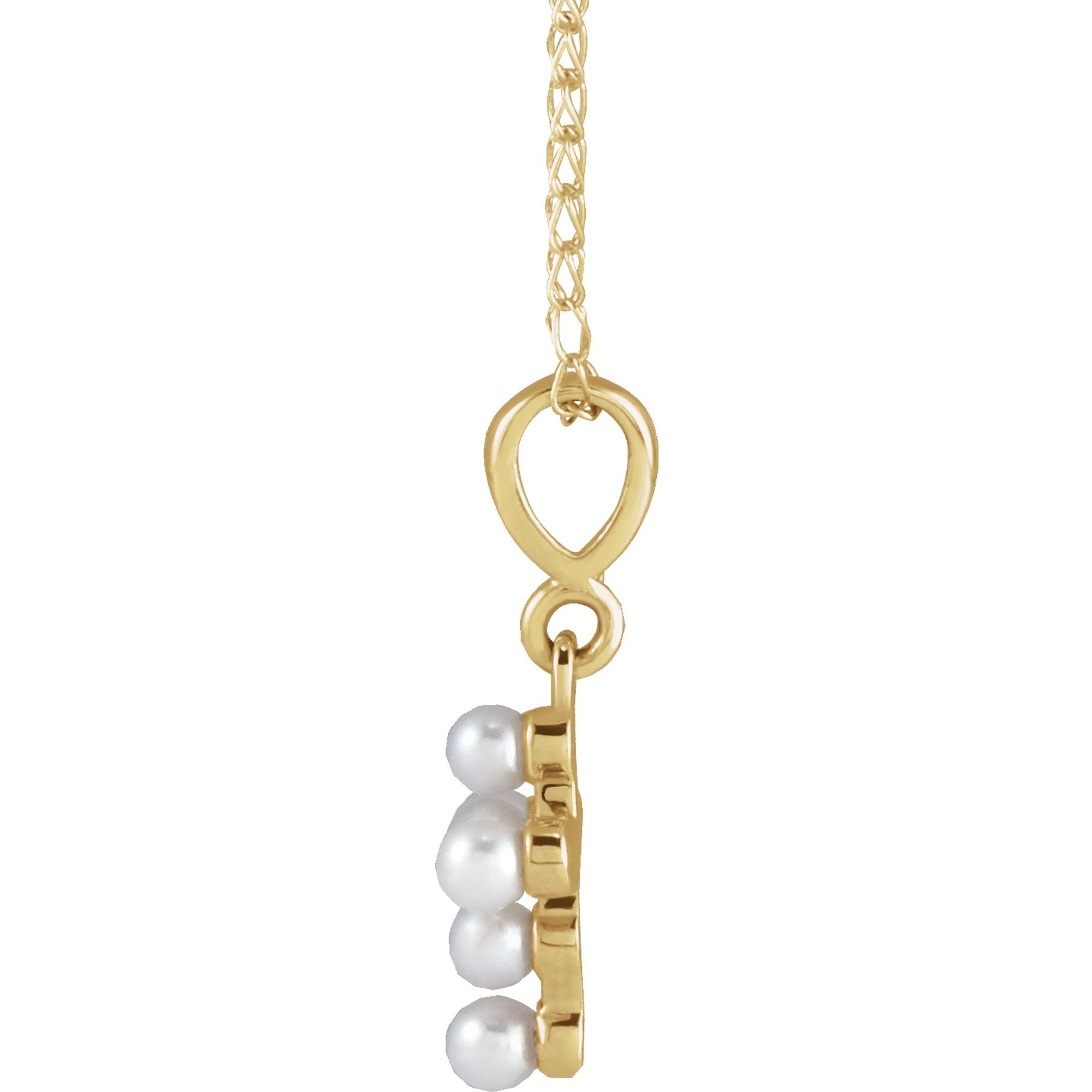 R50023 / Necklace / Set / 14K Yellow / Pearl / Cultured White Seed Pearl / 2 Mm / 16 In / Polished / Cultured White Seed Pearl Youth Cross Necklace