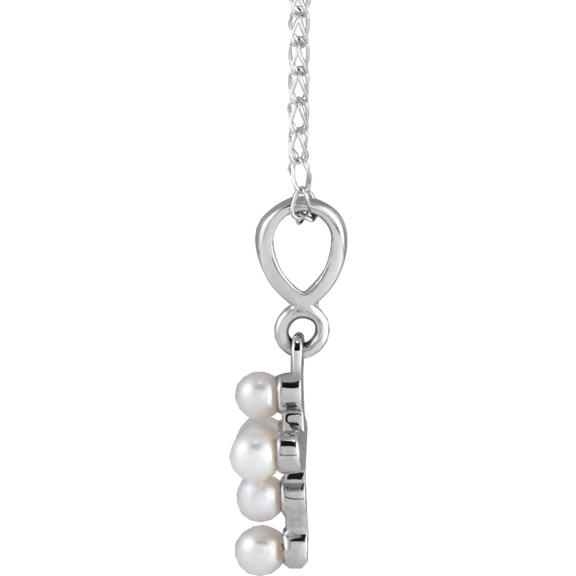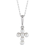 R50023 / Necklace / Set / 14K White / Pearl / Cultured White Seed Pearl / 2 Mm / 16 In / Polished / Cultured White Seed Pearl Youth Cross Necklace