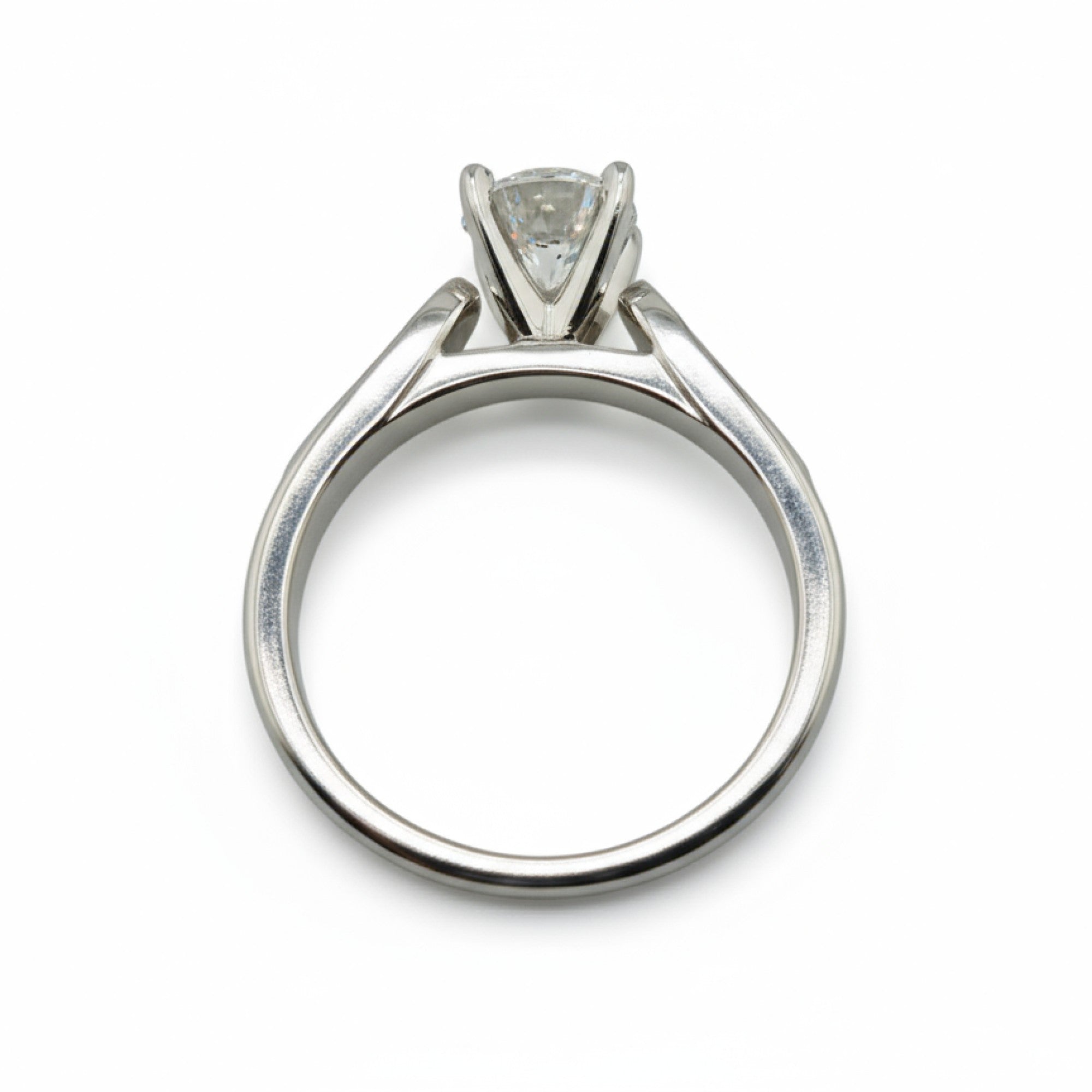 Abigail showcases a 1.03 carat round brilliant center diamond of Ideal cut and Internally Flawless (IF) clarity, accented by channel-set diamonds along the shoulders for a total diamond weight of 1.28 carats. Expertly crafted in 14k white gold, this elegant design combines timeless proportions with a modern edge—highlighting the diamond’s radiant fire and flawless precision.