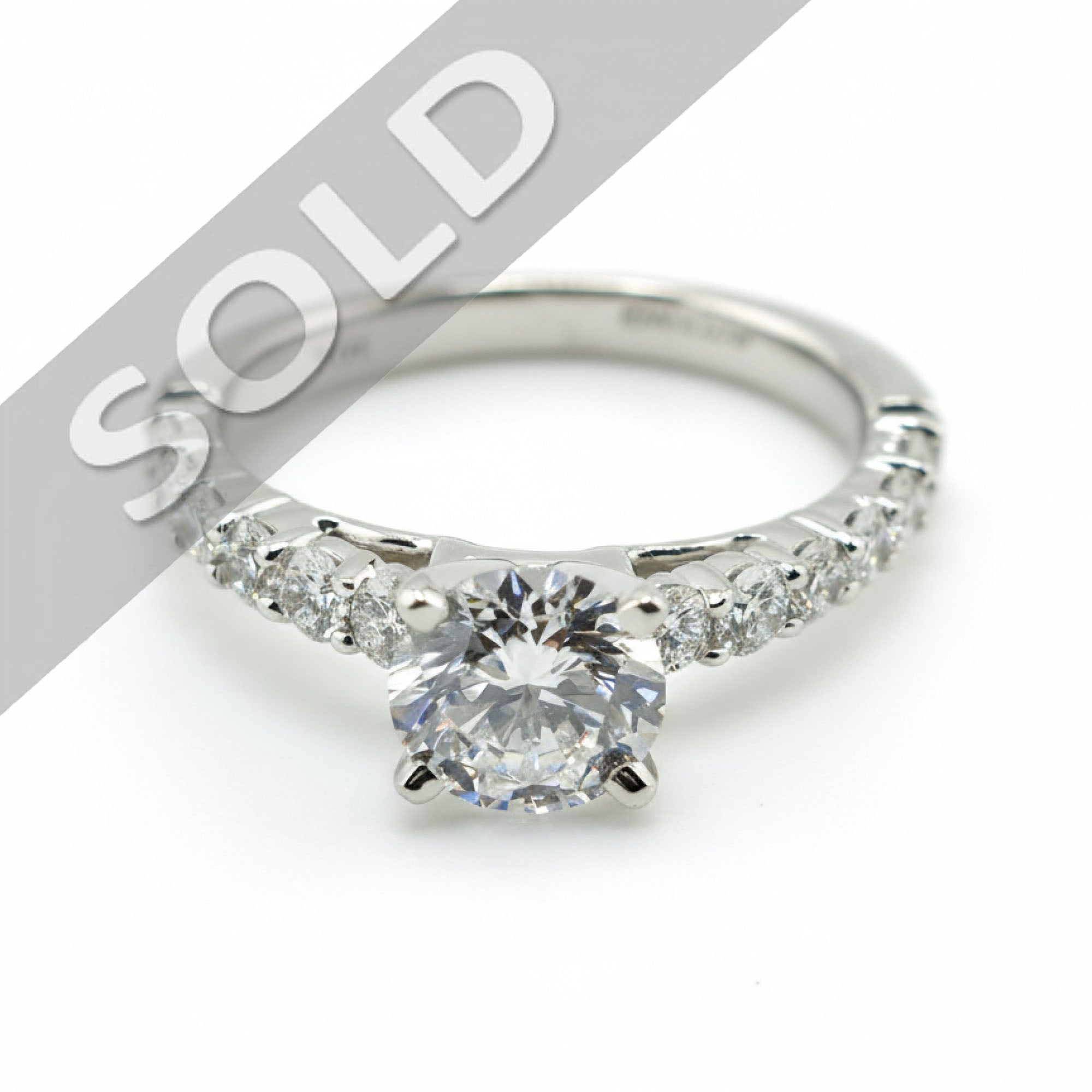 Alisa features a 1.04 carat round brilliant center diamond of Ideal cut and Internally Flawless (IF) clarity, enhanced by accent stones for a total diamond weight of 1.66 carats. Crafted in 14k white gold by ArtCarved, a heritage designer celebrated for over a century of craftsmanship and graceful design, Alisa radiates enduring brilliance and refined sophistication.