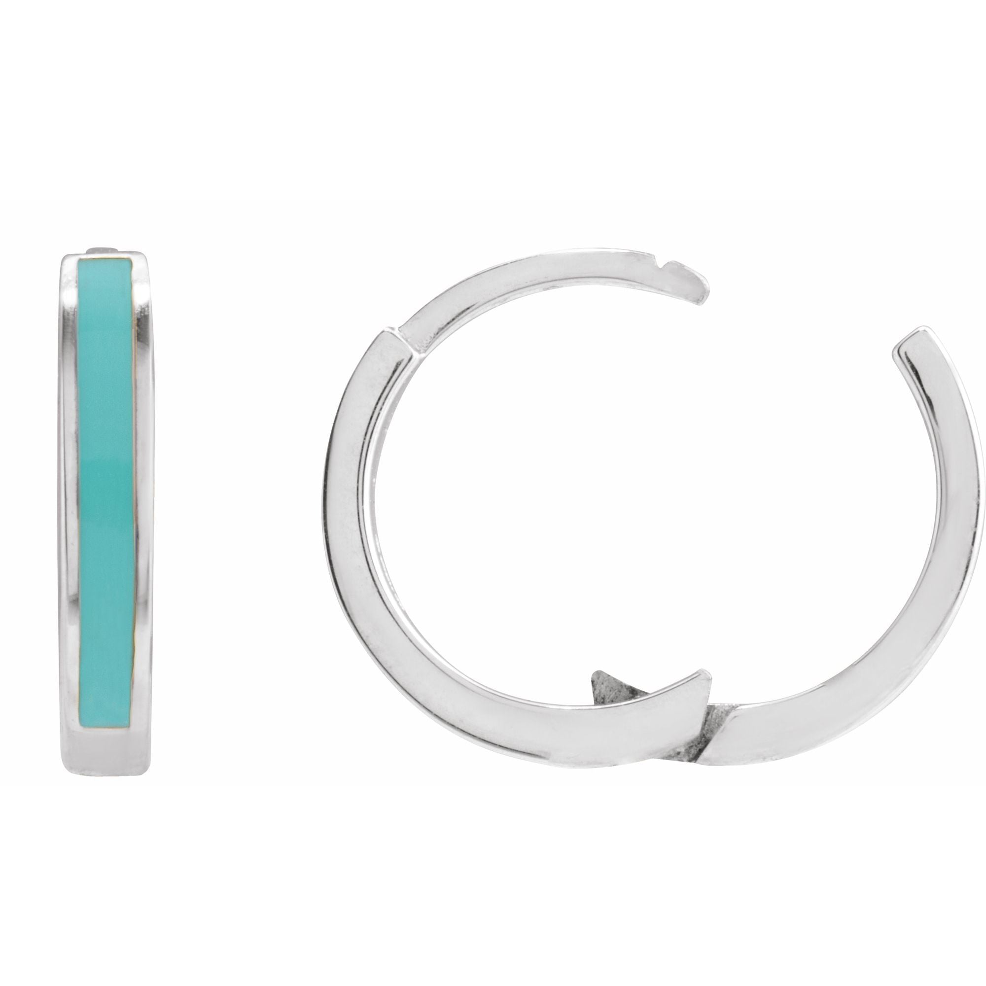 689146 / Earring / Sterling Silver / Turquoise Enamel / 12.1 Mm / 2 Mm / Pair / Hinged / Polished / Light Turquoise Enamel Hoop Earrings